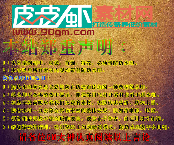 ![]() | 系统消息:带水印的剑甲不算,其他都算,只要别人上架,回馈给管理,马上改为免费! | 06-30 04:38 |
